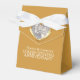 Boda de oro aniversario fiesta gracias caja de regalo. Personaliza con tu nombre y foto conmemorativa. Ideal para añadir un toque de color dorado personalizado a sus cincuenta años de fiesta de aniversario boda, fiestas de cena y reuniones informales. Embalaje de regalo ideal para favores o para colocar en las mesas de la recepción o mesas fiestas llenas de dulces o regalos. También haría un agradable homenaje conmemorativo de despedida por venir regalo. Oro amarillo y blanco dorado efecto cardiaco arte y diseño de Sarah Trett.