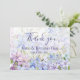 Nuesta tarjeta de agradecimiento para boda elegante de Vinca es una elección encantadora para celebraciones de primavera o verano. Hermosas flores de Clemátide de color vinca se desbordan sobre un fondo floral helado. Es perfecto para primavera o verano. Cualquier hermoso tema de boda de jardín sería perfecto