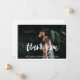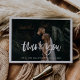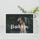 Expresar su gratitud y agradecer a sus invitados por su presencia y hermosos regalos con esta tarjeta de foto de personalizable con una tipografía moderna. Sólo tienes que añadir tu imagen boda favorita, cambiar los colores y escribir tu propio mensaje de agradecimiento.
