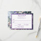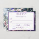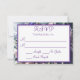 Elegante Boda Purple Floral Reply RSVP diseñado con un hermoso ramo de flores en tonos suaves de violeta con borde violeta y texto. El texto principal incluye: RSVP, The Reply By Date y espacio para que los invitados escriban sus nombres y respuestas. El reverso es un fondo Purple Floral a juego. Para personalizar, simplemente inserte su respuesta por fecha en nuestra plantilla sencilla, reemplazando el texto de ejemplo. No deje de ver toda la colección de Bodas de flores púrpura elegantes para ver el Stationery and Accessories que se emparejan.