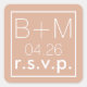Polvoriento rosa cuadrado con un par de letras iniciales en un estilo de letra delgado y elegante... para una boda rsvp.