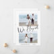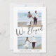 Anuncie su mejor día con nuestra tarjeta de boda. Características "Nosotros eludimos" en escritura moderna, centrada entre dos fotos bodas, con nombres, fecha y un mensaje personal en la parte posterior.