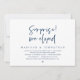 Moderna Navy Blue Script temática, tarjeta de invitación a la salida del boda (Sorpresa, nos fugamos). Es perfecto para su fiesta de recepción de boda/celebración post boda. Añade tus detalles en letras o letras negras coincidentes.