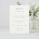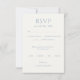 Bonita tarjeta de respuesta RSVP de moda polvorienta azul y marfil con monograma de pareja en la parte posterior. Esta plantilla presenta un conjunto contemporáneo de tipos de letra y una selección de platos para invitados de personalizable sencilla. El artículo forma parte de una suite de colección de bodas que incluye una selección artesanal de material estacionario para coincidir.