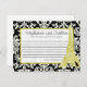 Boda en París Black Damask Tarjeta de asesoramient