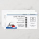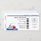 Guarda las tarjetas de invitación Date con un diseño de tarjeta de embarque rojo y azul para un boda de un barco ribereño! Plantilla fácil de usar, simplemente introduzca su información en el espacio proporcionado, o haga clic en el botón personalizar para agregar texto adicional.