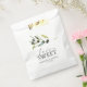 Esta bolsa de favores de boda incluye las palabras "Amor es Dulce" en la tipografía de moda. Una pizca de rama de olivo acuarela rodea la parte superior. Utilice los campos de plantilla para agregar nombres y fecha de boda o texto de personalizado. Para ver más papelería rústica boda visita www.zazzle.com/dotellabelle Arte acuático y diseño de Victoria Grigaliunas