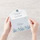 Floral azul polvoriento rústico con algodón, cardo y otra vegetación en tonos de azul polvoriento, verde salvia y blanco. La respuesta está perforada para que sea fácil arrancarla y enviarla de vuelta. La postal es del tamaño correcto para enviar a través de USPS al precio de franqueo más bajo, y la solapa trasera que superpone la postal es lo suficientemente grande como para cubrir las secciones de dirección de devolución y sello para evitar confusiones al enviar. Personalice con su propia información. Si necesita ayuda con esta invitación o para solicitudes personalizadas que necesite mi ayuda, no coloque esta mercancía en su carrito. En su lugar, envíe un correo electrónico a su solicitud a shutterbug600@yahoo.com. Nota: Solo puedo ayudar con el diseño, todo el envío e impresión es manejado por Zazzle y las preguntas relacionadas con su pedido deben dirigirse al soporte de Zazzle: SOPORTE: https://help.zazzle.com/hc/en-us/articles/221463567-How-Do-I-Contact-Zazzle-Customer-Support-. No tengo acceso a su cuenta y no puedo hacer cambios una vez que haya realizado su pedido