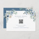 Boda floral azul RSVP QR Código Tarjeta de gabinet