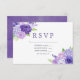 Tarjetas RSVP de boda floral color agua con colores del año 2018 ultra violeta con tonos violetas y verde sabio. Las flores incluyen hidrangea, lavanda, peonías y rosas.