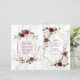 Diseñado para acompañar mi colección Romántica de Invitación a Bodas Florales de Borgoña, este boda diseño tradicional de servicio está diseñado para ser doblado, Y tiene otra página (parte 2/2) incluida en el interior. Esta portada externa muestra los nombres de la pareja, la fecha y el lugar en la parte delantera, y un lugar para un poema o cita o gracias en la parte trasera (página 8). En el interior, las páginas 2 y 7, se presenta la fiesta nupcial y otros funcionarios, y un agradecimiento personal, o letras de canciones, citas de la biblia, tal vez votos, o lo que mejor se adapte a tus necesidades. El conjunto está decorado con un fondo de textura de imitación de mármol, geométricas de oro de cobre y bonitos elementos florales rosa y borgoña con vegetación eucalipto. Encuentra la PÁGINA 2 aquí: https://www.zazzle.com/burgundy_floral_wedding_booklet_program_2_2_pages-256116327064262390 Copyright Anastasia Surridge para Elegant Invitaciones, todos los derechos reservados. PÓNGASE EN CONTACTO CON EL DISEÑADOR SI NECESITA ESTE ESTILO EN COLORES DIFERENTES, o una disposición más sencilla.