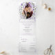 Incluye una tarjeta postal de respuesta para enviar por correo. Invitación de boda floral de peonía morada elegante todo en uno, estética cottagecore inglesa elegante de tres pliegues, corona de granja para exteriores. Temas de boda de jardín con carpa al aire libre, boho.