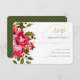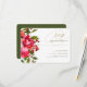 Esta elegante tarjeta de respuesta boda de temporada para Navidades presenta hermosas flores rojas y verdes, bayas y hojas, con caligrafía moderna de oro falso sobre un fondo blanco.