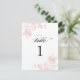 Una tarjeta de números de mesa de color rosa suave que coordina con nuestras invitaciones de boda Floral Vintage. Con una ilustración botánica floral vintage con caligrafía negra.