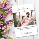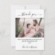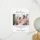 Fondo blanco. Guión con letras a mano grande con barras y el texto: Gracias. Personaliza y agrega tu foto, nota de agradecimiento y nombres.