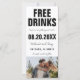 Tipografía blanca y negra divertida: "Bebidas gratis (y nos vamos a casar) boda salva las fechas. Personalizar con sus nombres, ubicación del boda, fecha del boda y foto favorita.