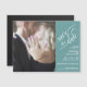 Estas tarjetas magnéticas son la manera perfecta de hacer saber a sus amigos y familiares que deben guardar la fecha para su próximo boda. Presenta un diseño único de 2 paneles con su foto a la izquierda y una barra verde azulada, turquesa o de color acuático a la derecha con una elegante caligrafía de escritura que dice "guardar la fecha" y todos los detalles a continuación. Sencillo, minimalista y hermoso.