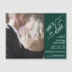Estas tarjetas magnéticas son la manera perfecta de hacer saber a sus amigos y familiares que deben guardar la fecha para su próximo boda. Presenta un diseño único de 2 paneles con su foto a la izquierda y una barra de color verde esmeralda a la derecha con una elegante caligrafía de escritura que dice "guardar la fecha" y todos los detalles a continuación. Sencillo, minimalista y hermoso.