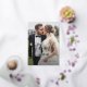 Esta elegante tarjeta de agradecimiento incluye un guión moderno de caligrafía caprichosa y romántica en Relieve metalizado sobre tu foto. Simplemente agrega tus fotos y los detalles de tu gran día usando la plantilla proporcionada. Visita nuestra tienda para ver más diseños como este