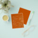 Tenga en cuenta que esta invitación está en papel de volante y es muy delgada. Los sobres no están incluidos. Para invitaciones más gruesas (el mismo diseño) visite nuestra tienda. Un fondo de color naranja a la moda quemado y decorado con simples hojas de ginkgo dorado. Personalice y agregue sus nombres y los detalles.