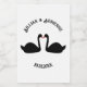 Esta impresionante hoja de Bodas etiquetas de botellas de vino mini muestra una imagen de arte digital de un par de hermosos cisnes negros enfrentándose unos a otros y pareciéndose a que se están besando. Son negros con ojos rojos y picos. Hay un texto personalizado para que puedas incluir los nombres de la pareja feliz y la fecha Boda.
