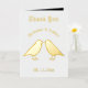 Esta increíble tarjeta de Boda de Relieve metalizado Gracias presenta una imagen de arte digital de un par de hermosos cuervos negros enfrentándose unos a otros y con aspecto de besarse. Son negras con ojos turbios y picos y pies grises. Hay un texto personalizado para que puedas incluir los nombres de la pareja feliz y la fecha Boda. También hay texto personalizado en el interior para que puedas personalizar esta tarjeta con tu saludo. El texto personalizado en el frente está en un hermoso Relieve metalizado de oro.
