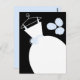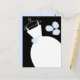 Tarjeta postal de temática matrimonial con un diseño de bonito en tonos azules, negros y blancos, con un estilizado vestido boda en una percha acompañado de un ramo en la parte delantera y la parte posterior azul pálido. Un diseño de personalizable para que puedas personalizar con tu propio texto, imágenes e ideas.