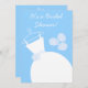 ducha de bonito pastel con tonos azules, decorada con un estilizado vestido boda y flores de fondo azul con escritura blanca. Diseñado para adaptarse a la gama de invitaciones y productos bodas de las "hojas blandas". Un diseño de personalizable para que puedas personalizar con tu propio texto, imágenes e ideas.