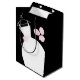 Bolsa de regalo de temática bonito en tonos rosas con un estilizado vestido de boda y flores sobre un fondo negro. Un diseño de personalizable para que puedas personalizar con tu propio texto, imágenes e ideas.
