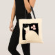 bolsa de lona con temática de bonito en tonos rosas, con un elegante vestido boda y flores sobre un fondo negro. Un diseño de personalizable para que puedas personalizar con tu propio texto, imágenes e ideas. Obra creada por Jess Perry.