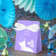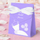 caja de favores con temática de novia pastel en tonos violeta, con un elegante vestido boda y flores sobre un fondo violeta. Un diseño de personalizable para que puedas personalizar con tu propio texto, imágenes e ideas.