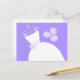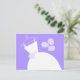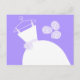 Postal de temática novia con un diseño de bonito en tonos violeta, negro y blanco con un estilizado vestido boda en una percha acompañado de un ramo de flores. Un diseño de personalizable para que puedas personalizar con tu propio texto, imágenes e ideas.