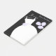 Notas post-it con temática de novia con un diseño de bonito en tonos violeta, negro y blanco con un estilizado vestido boda en una percha acompañado de un ramo de flores. Un diseño de personalizable para que puedas personalizar con tu propio texto, imágenes e ideas.
