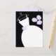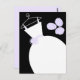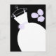 Tarjeta postal de temática novia con un diseño de bonito en tonos violeta, negro y blanco, con un estilizado vestido boda en una percha acompañado de un ramo en la parte delantera y la parte posterior púrpura pálido. Un diseño de personalizable para que puedas personalizar con tu propio texto, imágenes e ideas.