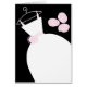 Tarjeta de saludo de temática novia con un diseño de bonito en tonos rosa, negro y blanco, con un estilizado vestido de boda en una percha acompañado de un ramo en la parte delantera y rosa pálido en el interior. Un diseño de personalizable para que puedas personalizar con tu propio texto, imágenes e ideas.