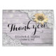 Boda Gracias Plantillas de Tarjeta - Luces de encaje, girasol y cuerdas antiguas sobre fondo de madera rústica. ¡Un Diseño Perfecto Para Tu Gran Día! Todos Los Estilo De Texto, Los Colores Y Los Tamaños Se Pueden Modificar Para Ajustarse A Sus Necesidades.