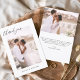Boda Gracias Tarjetas que tienen fotos y texto en la parte delantera y trasera. Las tarjetas de agradecimiento contienen una moderna tipografía de escritura cursiva con letras a mano que son elegantes, simples y modernas para usar después de la minimalista celebración del día de la boda.