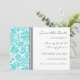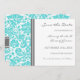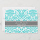 La boda ahorra la tarjeta de invitación de fecha con elegante y contemporáneo azul celeste turquesa brillante, gris carbón de carbón oscuro y blanco clásico y vintage patrón de damasco floral. Personalizable con los detalles de su boda, disponibles en una amplia gama de productos bodas a juego. Contáctenos para solicitar un cambio de color o un producto personalizado.