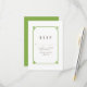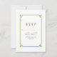 Tarjeta de respuesta de boda Deco Chic simple y minimalista con un borde ornamental art déco verde moderno. Esta tarjeta de respuesta clásica y elegante es fácil de personalizar con los detalles de su boda. Encuentre más opciones de personalización haciendo clic en Personalizar.