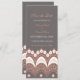 La boda guarda la tarjeta de invitación de fecha con un elegante patrón de color rosa melocotón, gris carbón y encaje blanco. Personalizable con los detalles de su boda, disponibles en una amplia gama de productos bodas a juego. Contáctenos para solicitar un cambio de color o un producto personalizado.