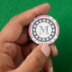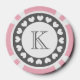 Boda rosa y gris con monograma de novia y novio. iniciales de personalizable en anillo de corazones. Chip de póquer fiesta personalizado con nombre monogramado inicial de pareja boda. Buena idea de regalo para los bodas. Tokens grises y rosas de carbón vegetal. El favor de la boda al estilo de las Vegas.