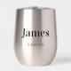 Único tumbler térmico personalizado para el novio con su nombre en una gran letra audaz y "Groom" en una tipografía simple.