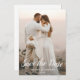 Una hermosa tarjeta de fecha guarda tus fotos favoritas con una superposición de texto con letras a mano en bonito. Agregue los detalles de su personalizado en la parte delantera y posterior. Sencillo y clásico, pero elegante y coordina perfectamente con muchos de los estilos bodas actuales.