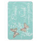 Hermosas mariposas de arte gráfico e imán giratorio floral en agua verde azulada, rosa y marrón. Una gran idea para ayudar a los huéspedes a recordar a su boda. Personalice su nombre y fecha de boda. Diseño original y bocetos de tinta de mariposa de Sarah Trett.