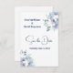 Esta boda, salvo la invitación de fecha, se muestra en el papel blanco mate con un diseño moderno de una acuarela de arte de flores preciosas azules y blancas. Texto en color Marina. Personalizar este elemento tomando el texto de ejemplo y poniendo su información en él. Imagen de archivo. freepik.com