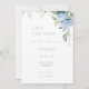 Esta hermosa hidrangea floral de boda plana, salvo la tarjeta de fecha, exuda un tono fresco, elegante y juvenil. La parte delantera de la tarjeta incluye texto de invitación, una dirección web del boda, información del boda así como un adorable arreglo de hortensias azules. El conjunto de fuentes polvorientas azules es moderno y elegante con un fondo blanco. Personalice esta elegante y elegante invitación a la boda para convertirla en su propia casa.
