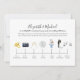 ¡Esta moderna invitación a la boda tiene un doble propósito! Contiene toda la información necesaria para una invitación formal junto con su programa de bodas, que se puede utilizar para aconsejar a los invitados acerca de cómo se planificará el día. Cuenta con cronología, campos de plantilla para el programa de bodas para preparaciones, ceremonias, fotos, hora de coctel o tostadas, comida, corte de torta, primer baile y música y baile, recepción nocturna. Cada evento de línea de tiempo va acompañado de un atractivo icono ilustrado de acuarela. En la parte delantera se pueden añadir nombres de parejas, detalles de la ceremonia y de la recepción y al revés se puede añadir rsvp y cualquier otro detalle que se desee, incluyendo registro de regalos, dirección, información de hotel y transporte y más. Para buscar elementos coincidentes y ediciones de personalizado, póngase en contacto con el Diseñador LeahG
