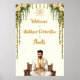 Matikoor Haldi boda indio plantilla editable poster de bienvenida descarga digital instantánea con una caricatura de personalizado de novio con atuendo de marfil y guirnaldas florales de campanas de oro blanco