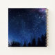 Noche estrellada, cielo azul nocturno, árboles de bosque, galaxia, libro de bodas temático celestial.