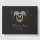 Libro de visitas con un diseño de dos novios, a ambos lados de un corazón dorado. Este artículo forma parte de un conjunto de bodas que incluye una invitación a la boda, una tarjeta rsvp y más. (Los elementos de oro del conjunto son de oro falso y no de Relieve metalizado de oro).